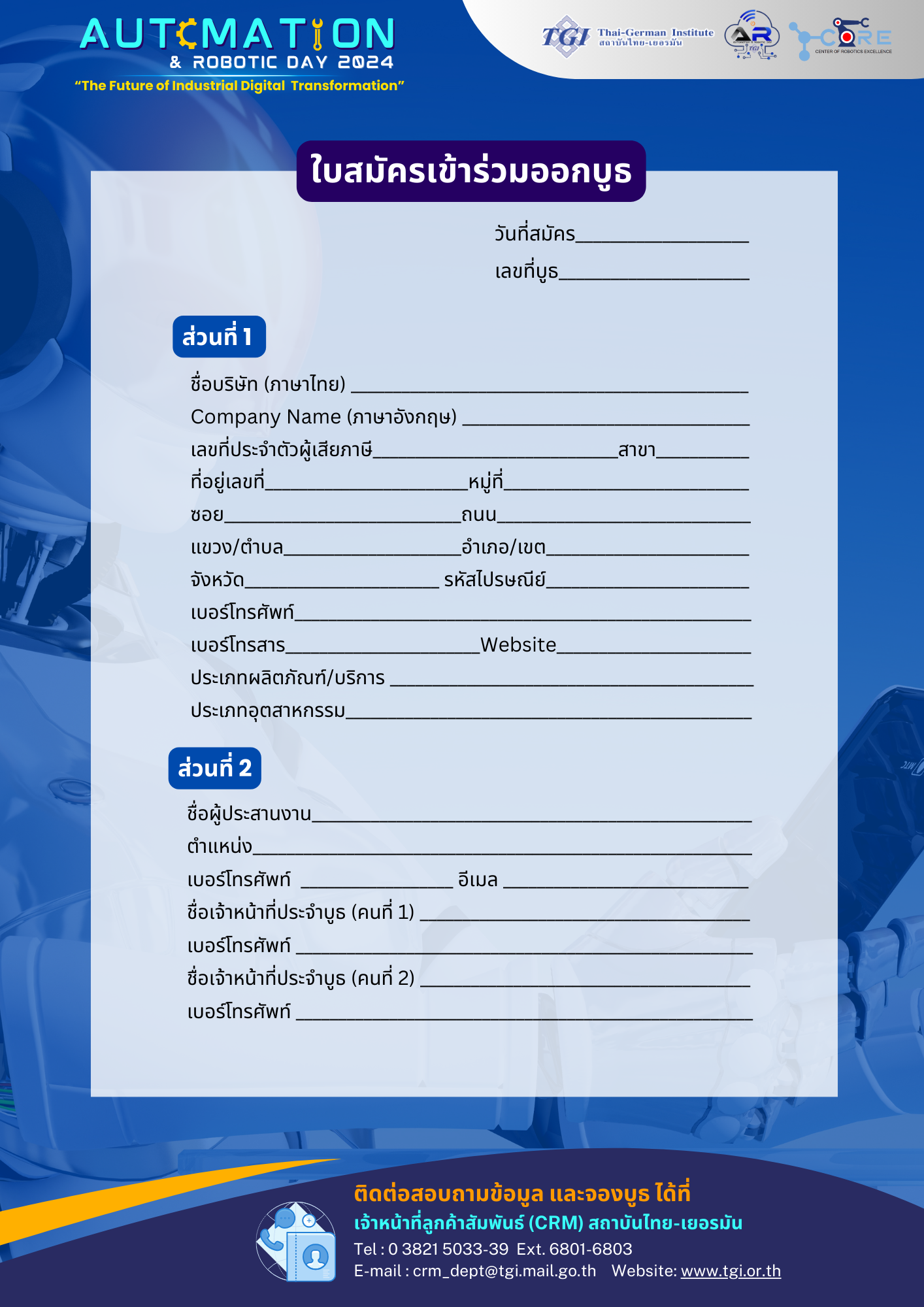 เปิดให้จองบูธแล้ววันนี้ กับงาน 𝗔𝘂𝘁𝗼𝗺𝗮𝘁𝗶𝗼𝗻 & 𝗥𝗼𝗯𝗼𝘁𝗶𝗰 𝗗𝗮𝘆 𝟮𝟬𝟮𝟰