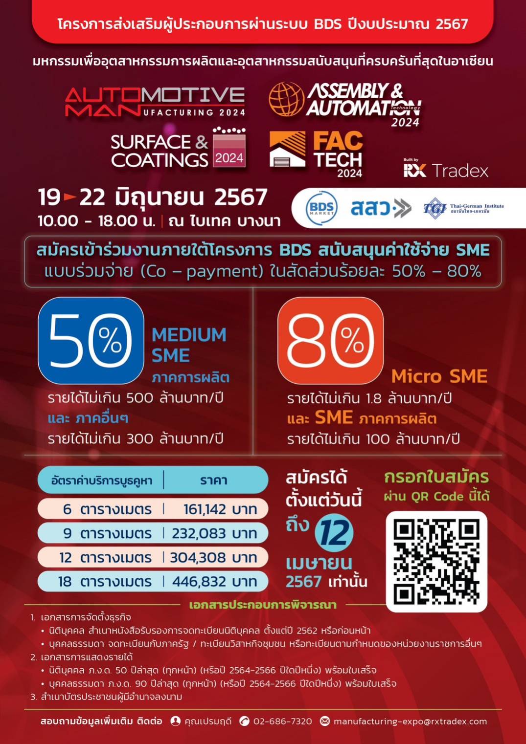 สมัครเข้าร่วมงานภายใต้โครงการ BDS สนับสนุนค่าใช้จ่าย SME