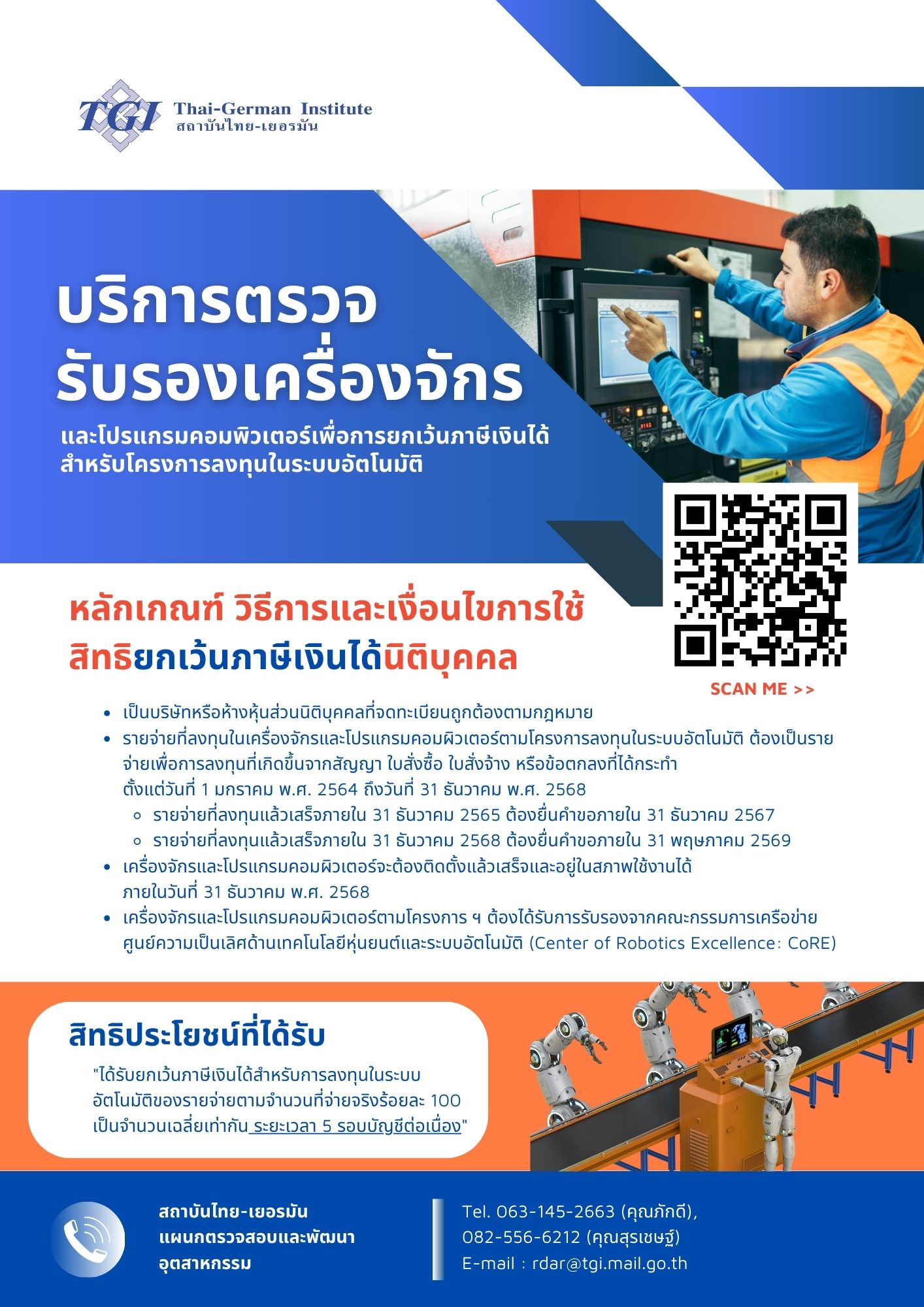 โทร.06-3145-2663 (คุณภักดี) โทร.08-2556-6212 (คุณสุรเชษฐ์) หรือ E-mail : rdar@tgi.mail.go.th
