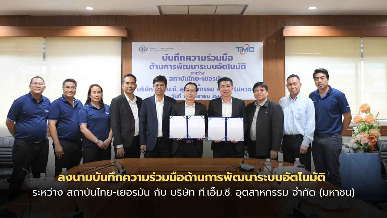 คุณสมชาย จักร์กรีนทร์ ผู้อำนวยการสถาบันไทย-เยอรมัน คุณสิริวัฒน์ ไวยนิตย์ ผู้อำนวยการศูนย์เทคโนโลยีการผลิตอัตโนมัติและหุ่นยนต์ และคุณณัฎฐ์พงษ์ ปัญจวรญาณ ประธานเจ้าหน้าที่บริหาร คุณพนม รัตนะรัต กรรมการบริหาร บริษัท ที.เอ็ม.ซี. อุตสาหกรรม จำกัด (มหาชน)