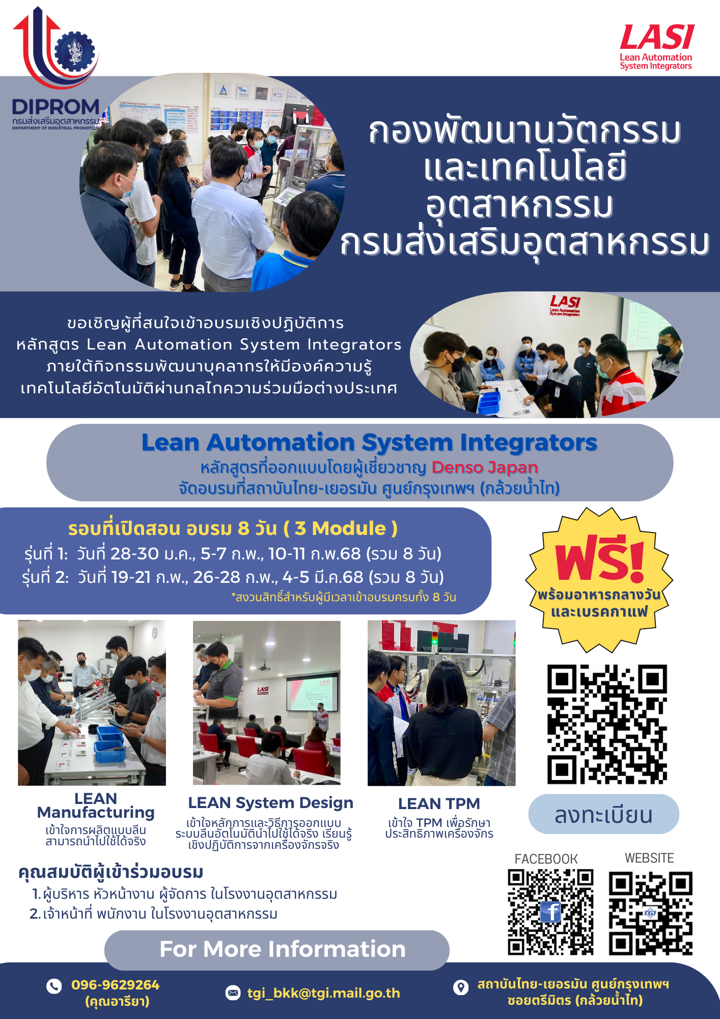📣ขอเรียนเชิญผู้ที่สนใจ เข้าร่วมฝึกอบรมเชิงปฏิบัติการ หลักสูตร Lean Automaton System Integrators