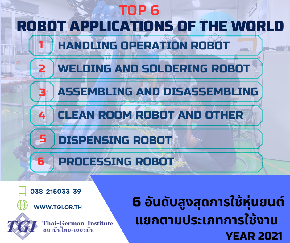 💎6 อันดับสูงสุดการใช้งานหุ่นยนต์อุตสาหกรรมแยกตามประเภทการใช้งาน (Application) ปี 2021