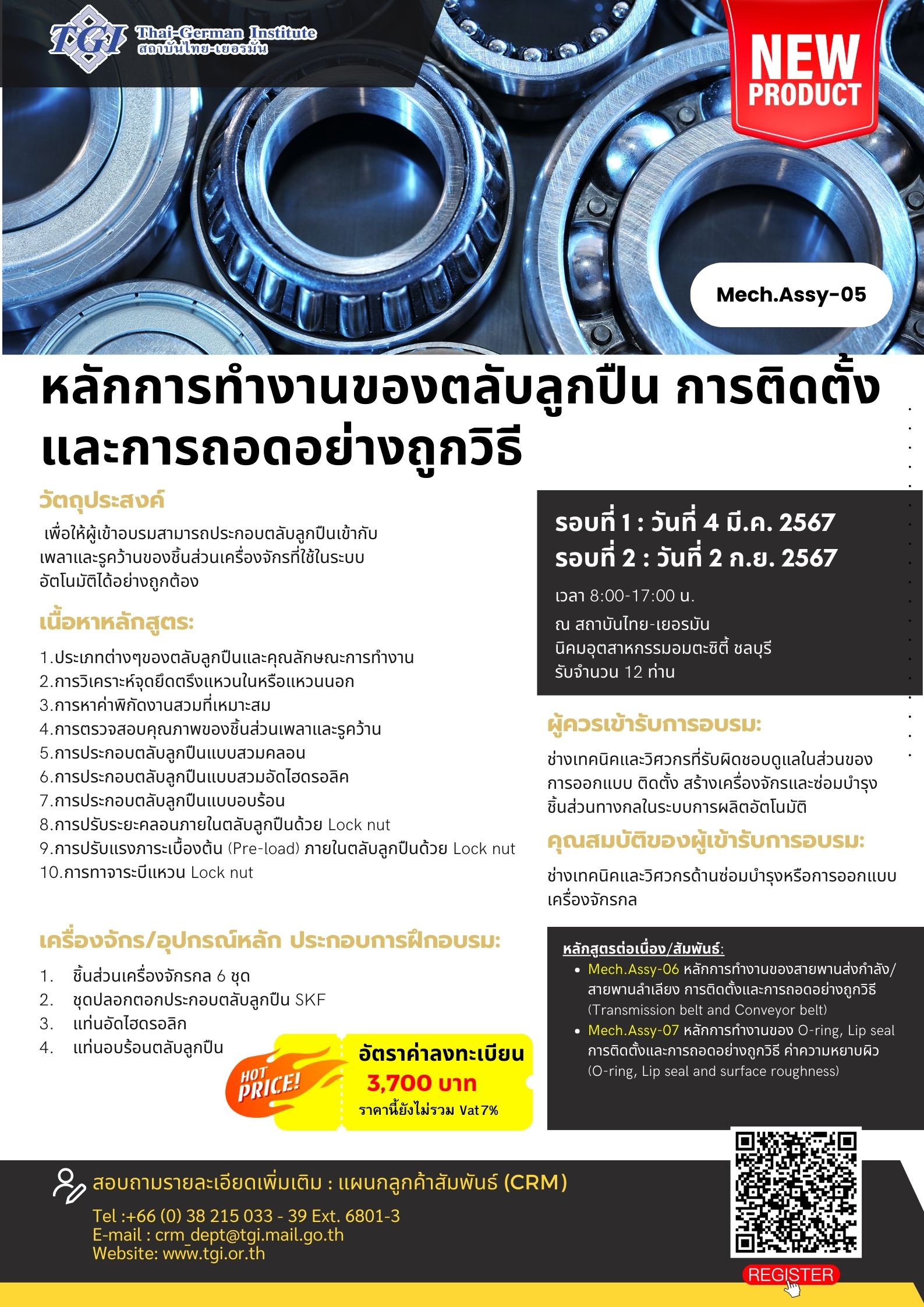 เพื่อให้ผู้เข้าอบรมสามารถประกอบตลับลูกปืนเข้ากับเพลาและรูคว้านของชิ้นส่วนเครื่องจักรที่ใช้ในระบบอัตโนมัติได้อย่างถูกต้อง